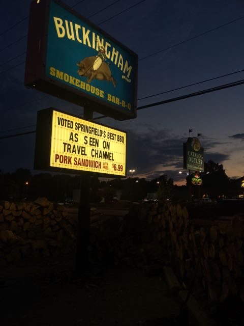 Anyway, right across the street is the second important part of Springfield, and that’s the Buckingham smokehouse and grill. We hadn’t gone for any BBQ on this trip, and I am sorta glad we waited, because this was worth the trip. The Brisket was awesome, but we got talking to the chef, who was originally from Memphis (so he should know his BBQ), and he asked us why we didn’t get the “Burnt ends”…We told him he’d never had them before, and he was in some sort of souther shock – he went back to the kitchen and brought some back, making a comment of disbelief to his  co-worker 🙂