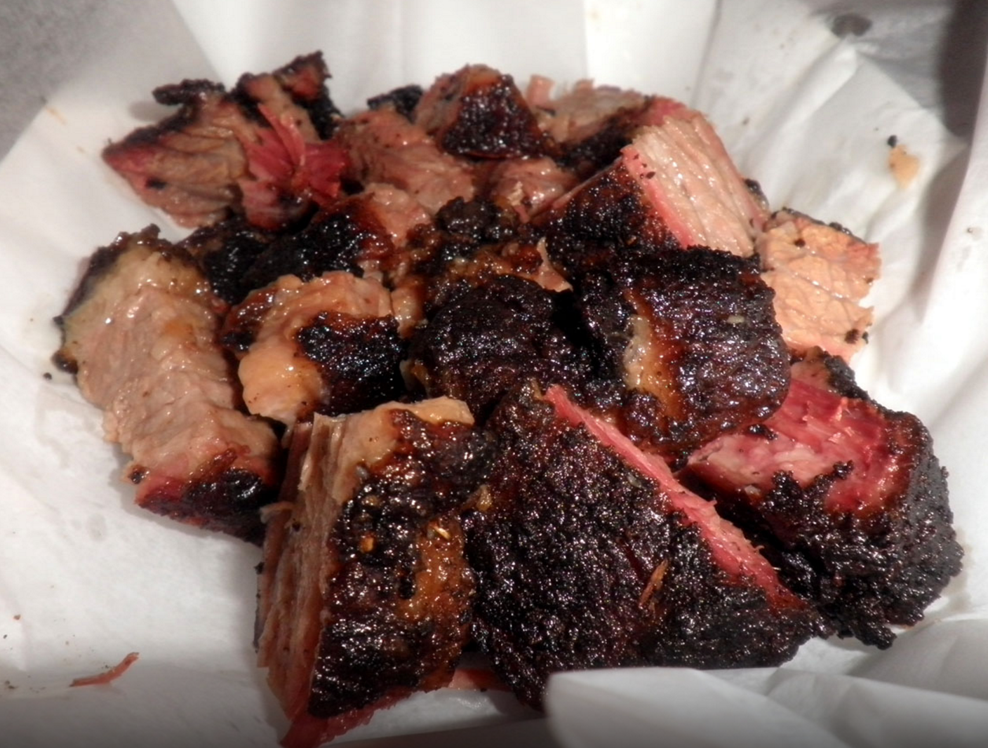 What he brought back for us to sample was beyond awesome…beef that was melt-in-your-mouth, salty, smokey, with a slight nice bit of bark as well…pure BBQ heaven! I included a picture that’s not mine below, so you can drool too…on Buckingham’s menu, the description of Burnt ends is “One of BBQ’s great experiments. So good you’ll slap your neighbour!” Haha…