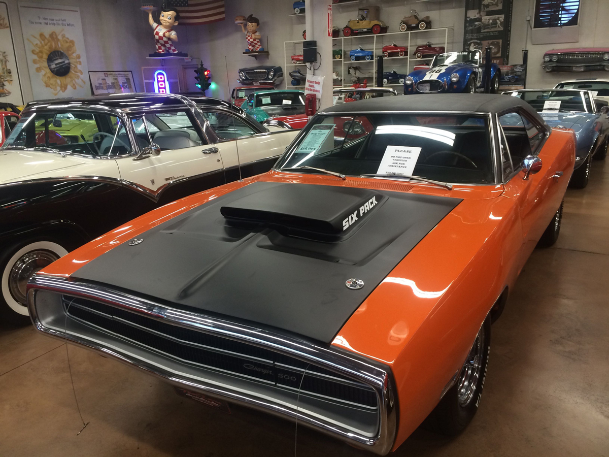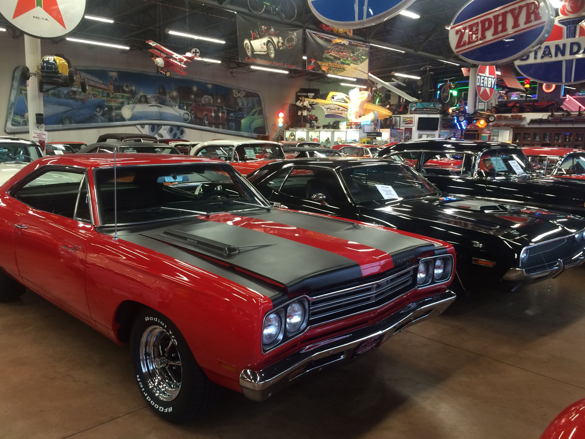 By the time we left it was already after 5pm and the arch closes at 6pm after labour day, so we decided to drive out to the Northwest end of the city to see the “Fastlane” car dealer, which deals in classic cars. WOW! I have at least a couple friends who would absolutely love to shop at this store, with a current inventory of ~180 cars, everything from 40’s classics to 60’s and 70’s american muscle cars. Amazing stuff. They had two ’62 Galaxie 500’s there (the first car I owned was a four door ’62 Galaxie), as well as a ’70 Roadrunner (which I also owned back in the day)…they also had many other cars, which I will create a separate picture carousel for…