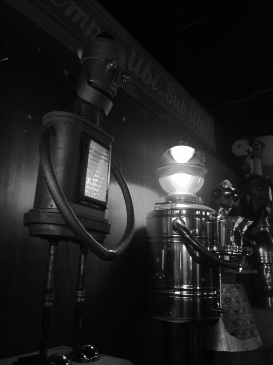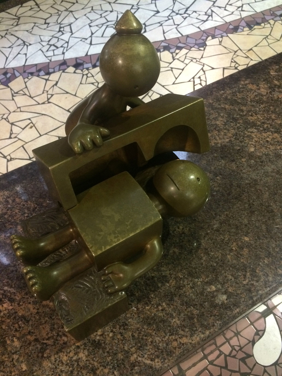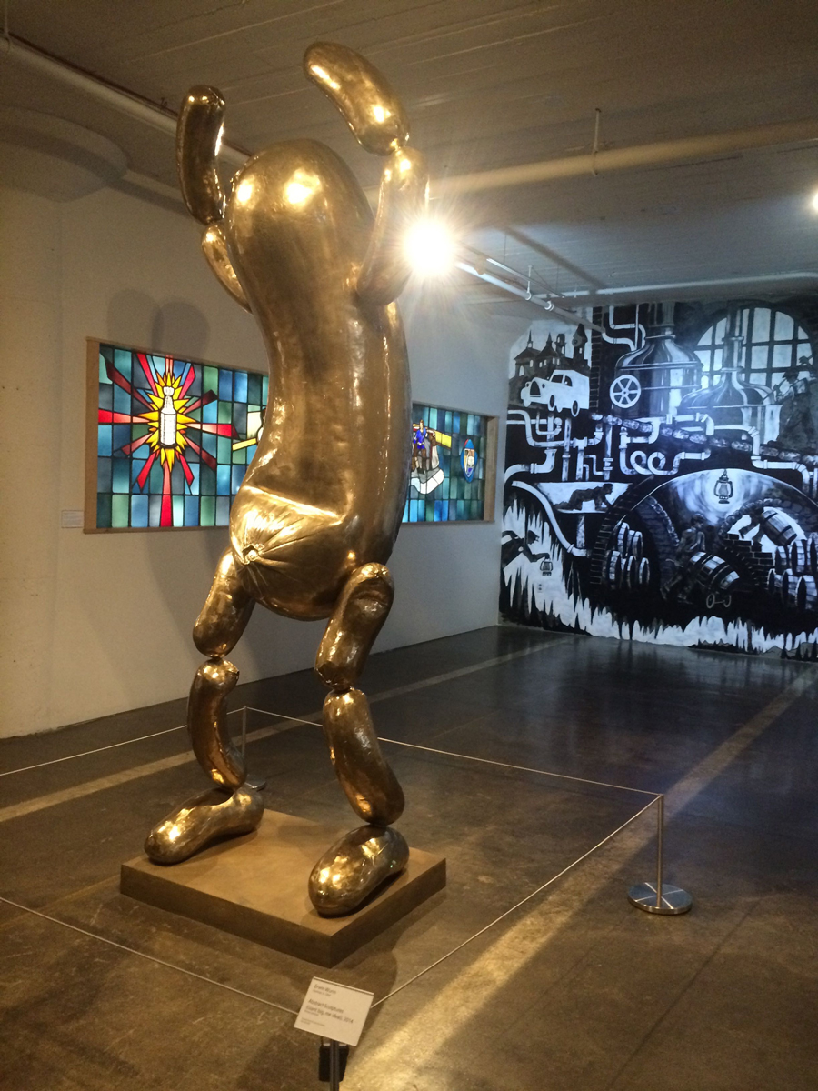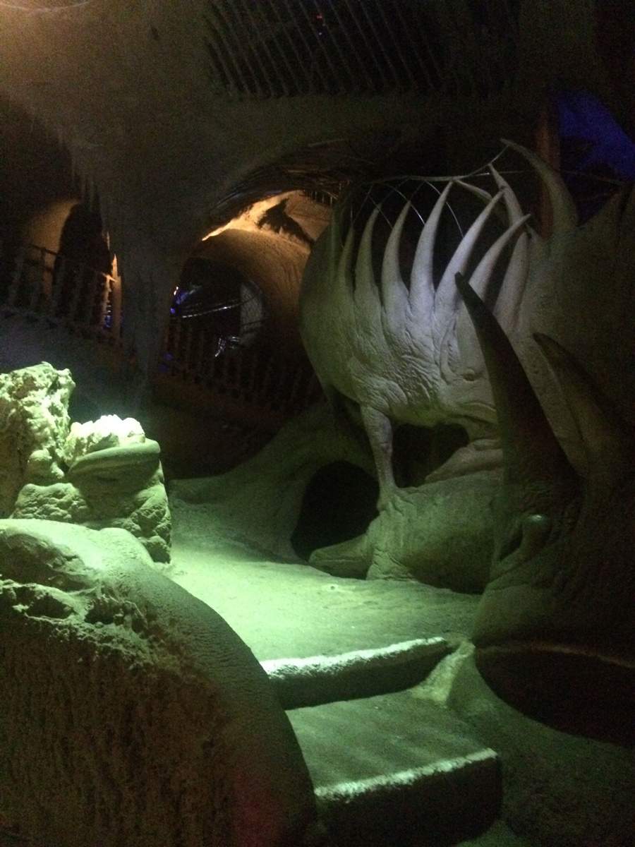 Then we got to the fork in the road – do we go up in the arch for a view of the city, or do we go to the City Museum (which we’d seen a hint of the day before – there is a 30 foot ferris wheel on the roof!) Well, we decided that we’d try both but that we’d first go to the museum. We were there for quite a while actually, and it was absolutely the most amazing place I’ve seen in a LONG time! It was curated by a madman who died a few years ago, but it continues to be modified and built upon. It currently takes up four floors of a 15-story-or-so downtown building, and then the stuff on the roof which we didn’t get to see on account of the rain…but no problems, the first four floors were enough! It’s really hard to describe, but it’s full of donated stuff, and there are all kinds of places to explore – welded steel spiral staircases to the next floor, hidden passages and even a ‘cave’ section which housed dinosaurs in the walls, all kinds of spidery steel staircases, and a five as well as a ten story slide which goes form the top of the building to the ground! It’s absolutely glorious madness, and I am at a loss to even properly describe it…but I will share some pix at the bottom of course. I said several times to Sandra that my brother-in-law Norm would absolutely love this place…